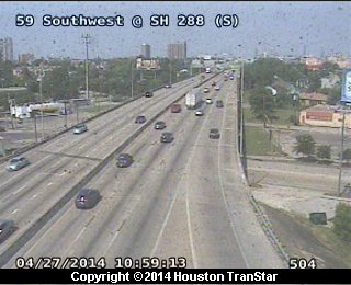 Here’s a Transtar photo of what I have to do as soon as I hit the highway on my way home: I get on 288 and immediately have to make my way across the three right lanes leading to highway 59 in order to get to I-45, accessible only through the two left lanes. During rush hour that means I either rely on the kindness of other drivers or cut them off mercilessly. Every day I go through that. Sometimes I have stayed late at the office just to avoid the time of greatest congestion.