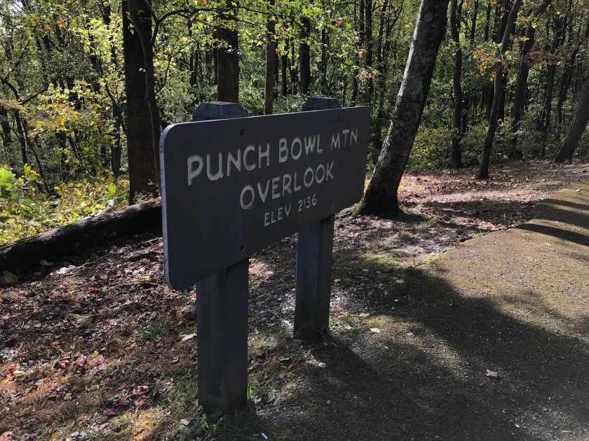 On my trip back from Massachusetts, I stopped at the Punchbowl Mountain overlook, not realizing until I saw a white blaze that this was one of several places where the Blue Ridge and the AT intersect.
