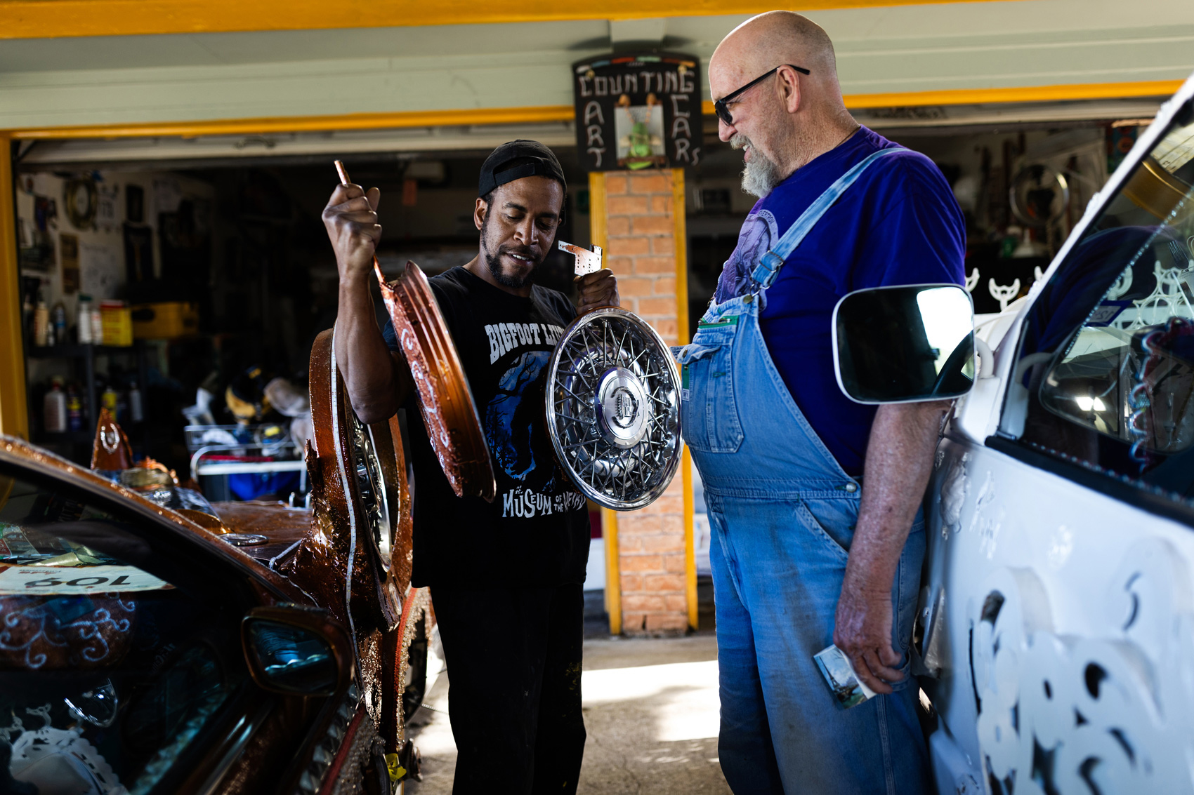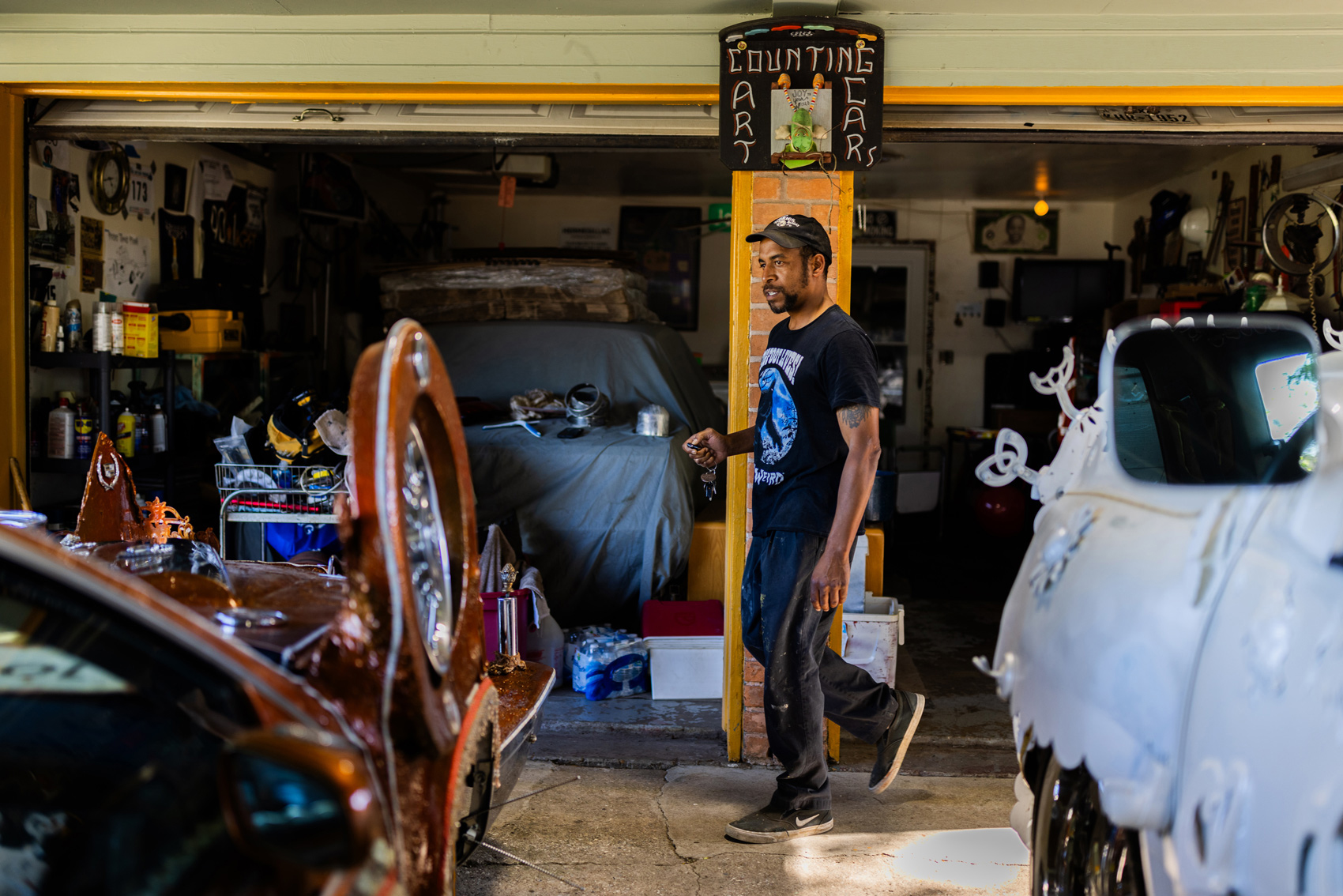 “I really don’t know where any of this stuff is going to end up,” he says of the various items he has at hand. The art speaks to him, as he puts it. The process of finishing the car can take as long as three years.